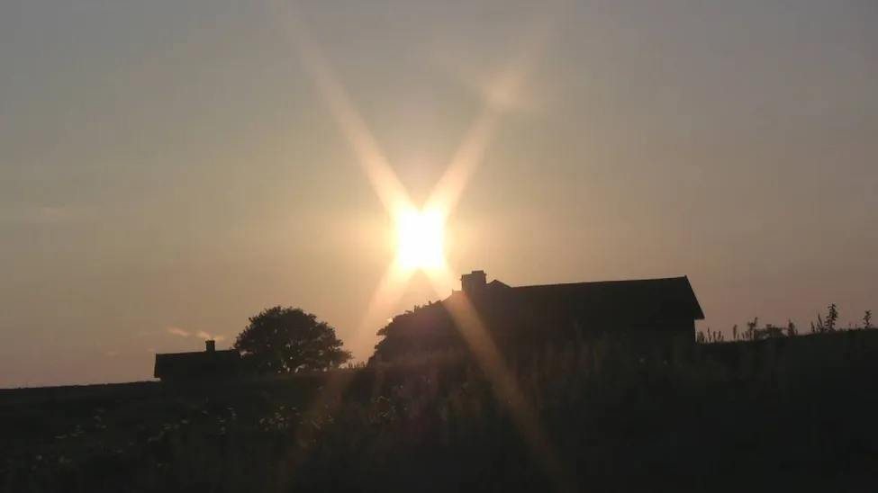 Solen börjar sakta gå ner i väster mot Närkholms fyrplats. Ett fantastiskt skådespel i sommarkvällens ljumma bris.