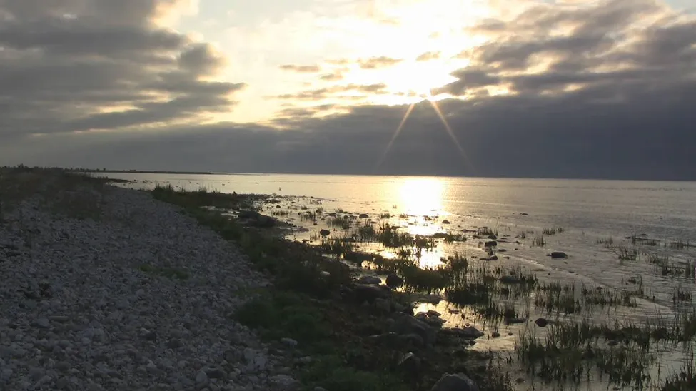 Tidig soluppgång invid Närsholmens fyr (strandparti mot söder)