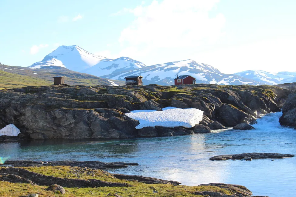 Konsul Perssons stuga med norska Sorjostjåkkå i bakgrunden