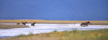 Laxarna har börjat vandra upp i älvarna och denna hona lär sina avkommor hur man fångar dem. En timme senare uppenbarade sig åtta björnar på deltat.