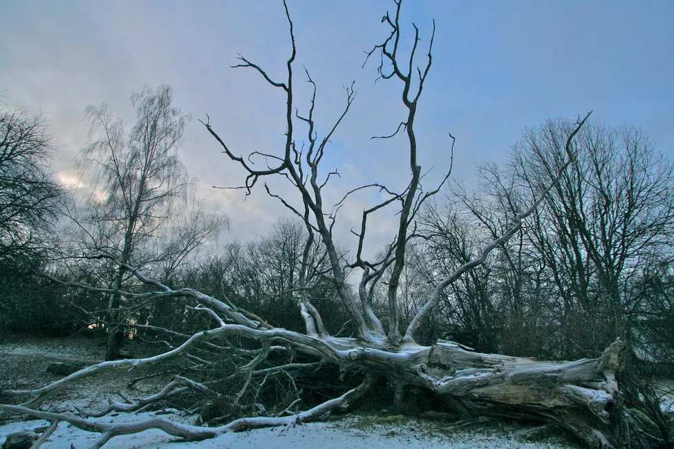 Ett träds sista vila i ena kanten av Ekhagen i Kungshamn-Morga naturreservat.