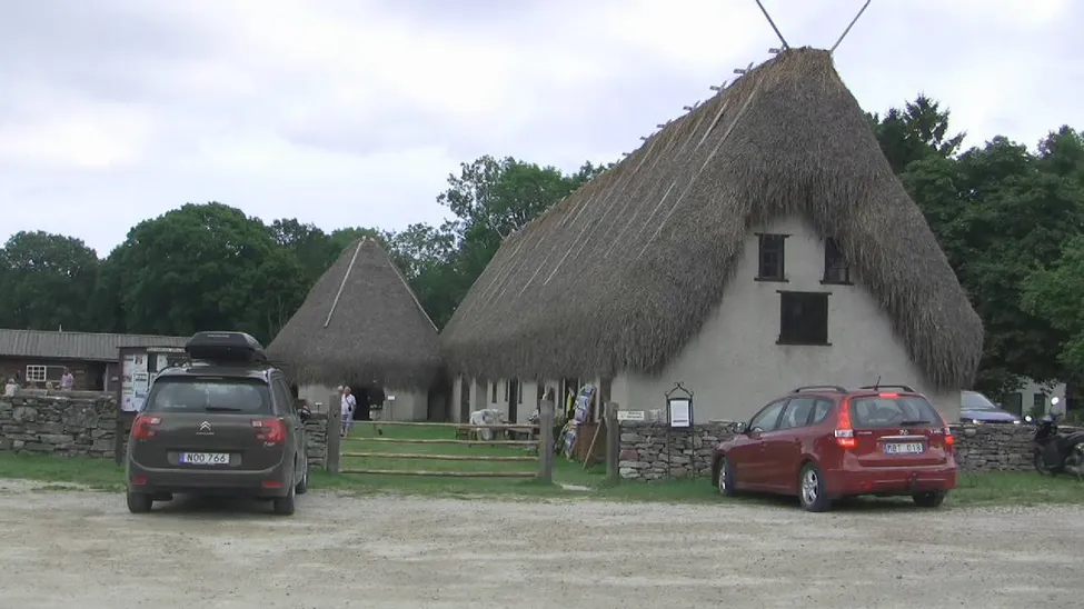 Gårdslängor med täta s.k agtak. Ag är en vassliknande växt som lagts i täta lager så att regn och smältvatten rinner av taket utan att rinna igenom.