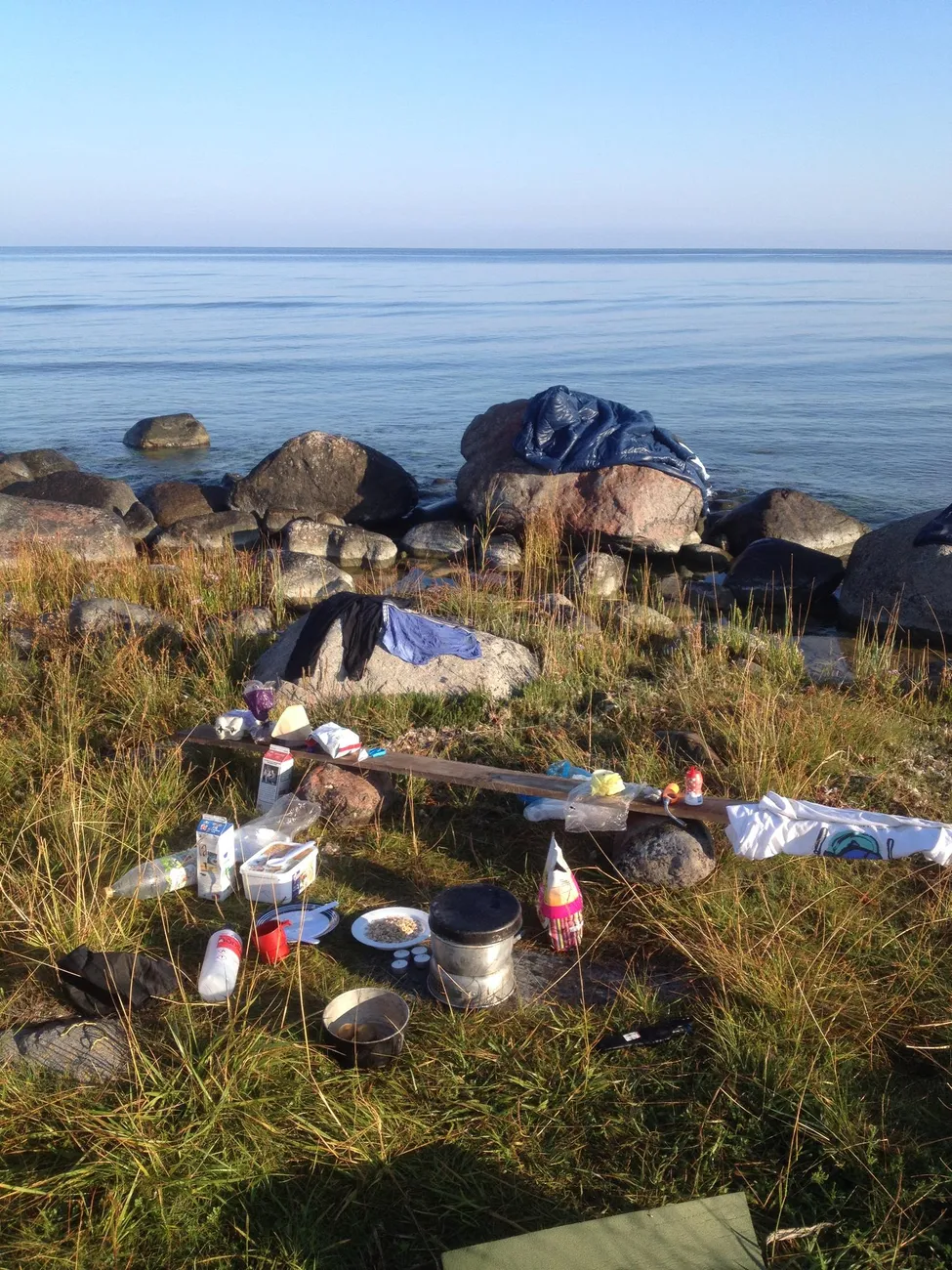 Frukost vid nattlägret vid Själsö strand