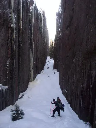 Det var när jag och min polare och klasskamrat Niklas var ute och gick högakustenleden i vintras med snöskor. Detta var nog det häftigaste stället på vår lilla tripp.