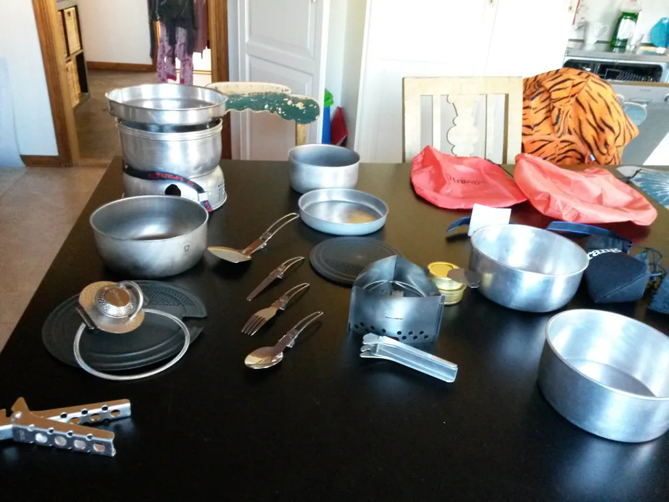 De båda köken jag använder. Det lilla är en "hybrid". 18cm panna, 1.5l kastrull, Triangel och disc. Det äldre handtaget.