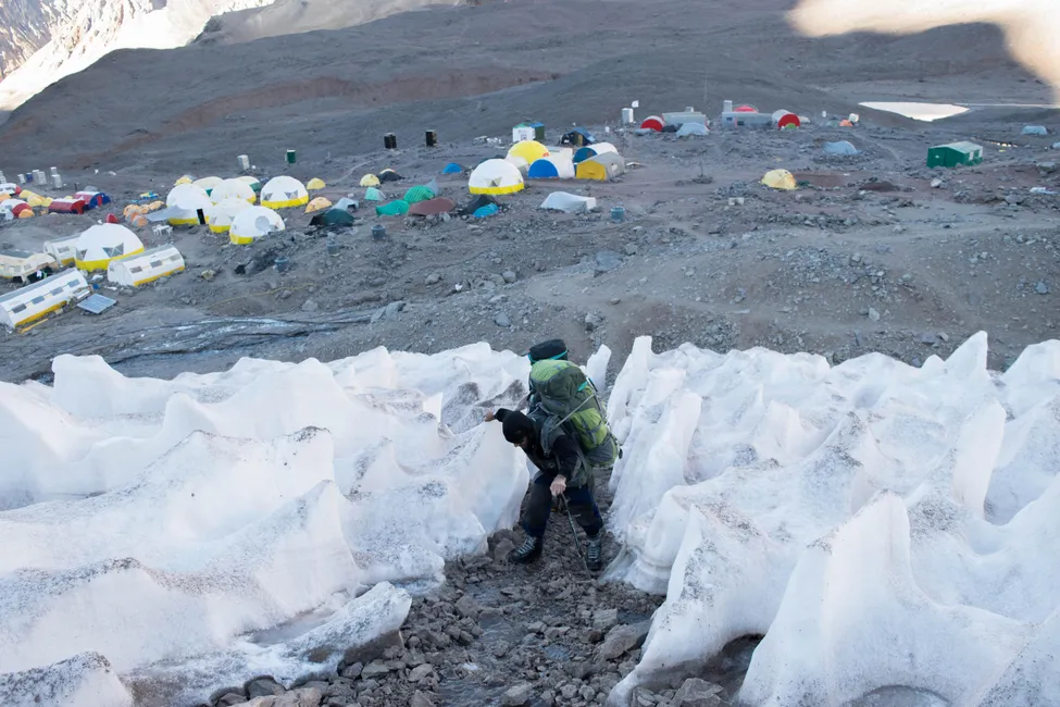 Aconcaguas egna lilla "isfall" på vägen upp mot läger 1, Camp Canada.
