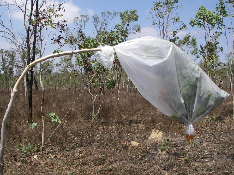 Samla in vatten med hjälp av avdunstning, ca halvlitern till litern per dygn.