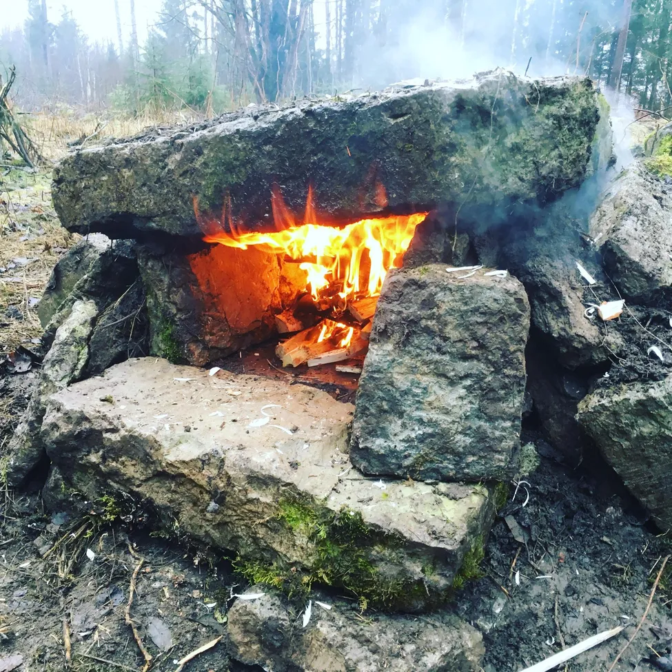 För att få värme i denna best måste man elda både på insidan och utsidan ender ett par timmar.