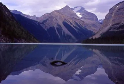 Vandring langs med Berg Lake Trail i the Canadaian Rockies.