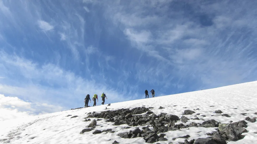 Jag och mina sex systrar plus min fru på Östra leden mot Sydtoppen på Kebnekaise