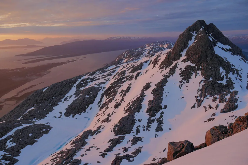 Syv Søstre, Sandnessjøen. Från Grytfoten mot Botnkrona vid midnatt i juni