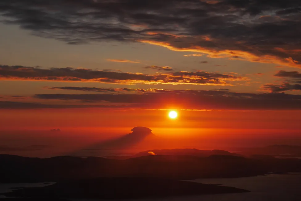 Midnattssol på 1019 m.. Ön Lovund i fjärran.#grytfoten #helgeland #lovund #midnattssol