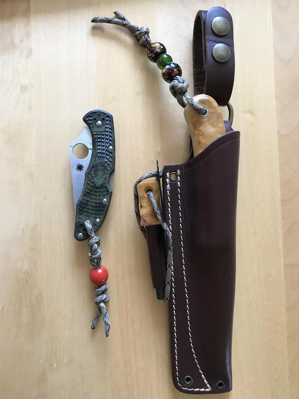 Dekoration: Paracord och kopior på glaspärlor från vikingatiden.