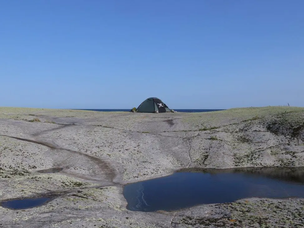 Ett kupoltält är guld värt på kala klippor, mitt gamla Staika är på plats inför natten!
