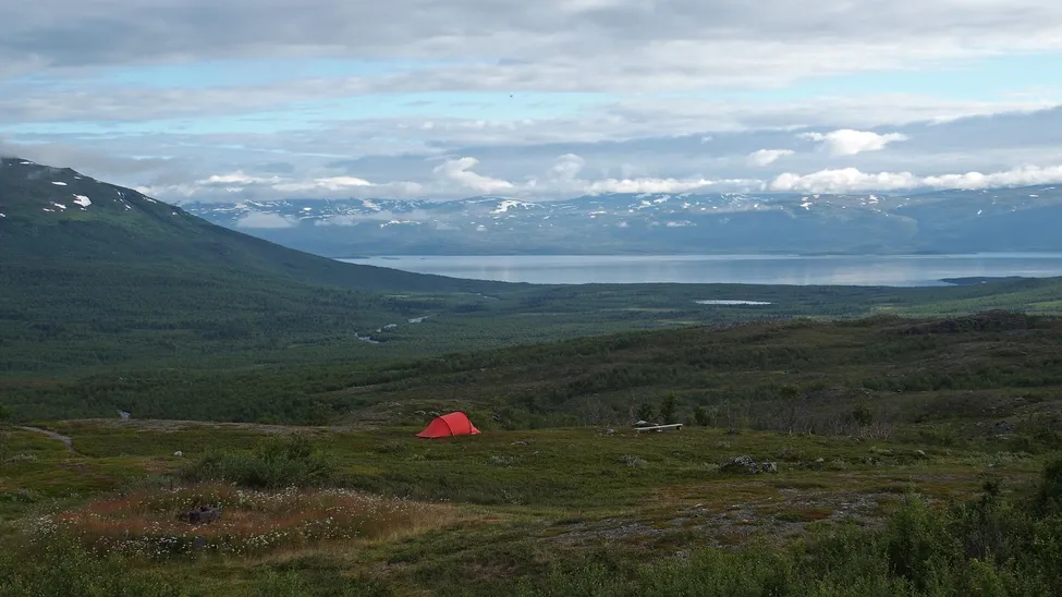 "Tältlägret". Morgonutsikt mot Torneträsk.