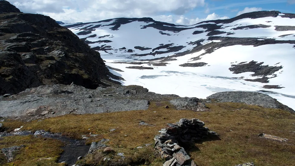"Harpasset". Den omskrivna tältplatsen. Utsikt ner mot sjöarna i övre Guoblavaggi.