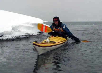 En vintertur januari 04, vinden drog från land, vi paddlade ut för att se de härliga snöhängen från klipporna. Små mini-laviner rasade här och där... Thomas Åhlberg tog bilden