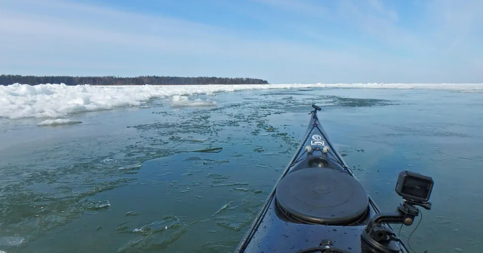 Paddling mest kring Hjortens Udde på Vänern. I slutet på mars och början på april 2018. Sen vinter men den hann bli mycket is ändå.