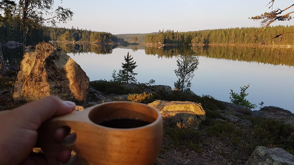 Morgon kaffet till en spegelblank sjö. Bästa tiden på en tur för mig.