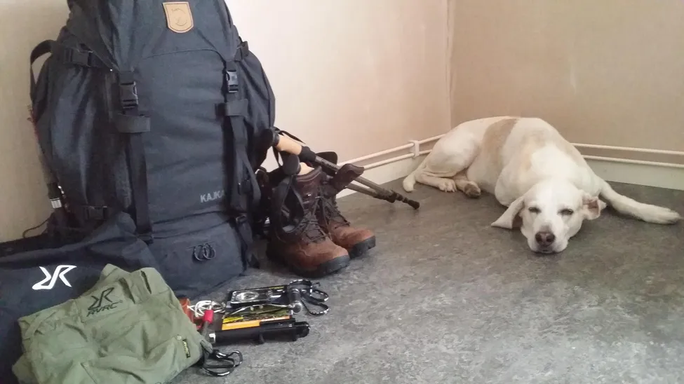 Provpackade lite och hund har sovit intill ryggan 2 nätter i rad. Inte bara jag som har resfeber :D