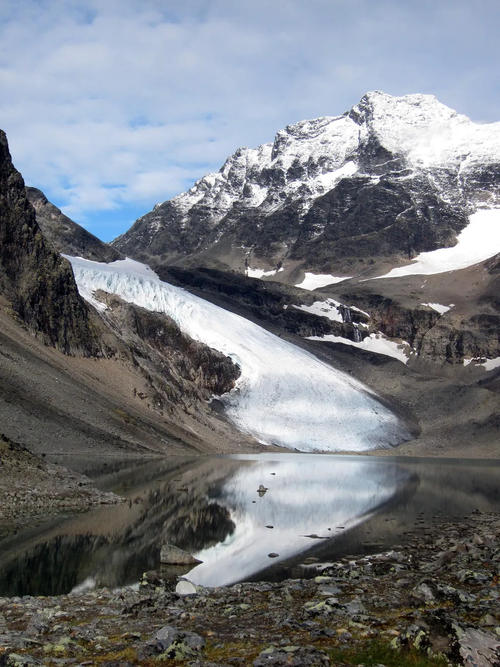 Kaskasapakte med Kebnepakteglaciären och Tarfalasjön i förgrunden#klättring #vandring,