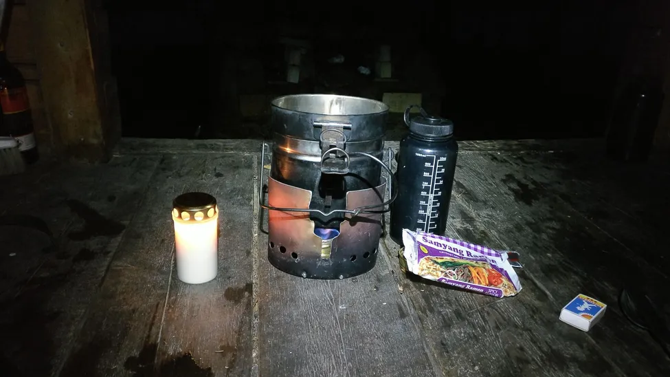 Efter två regniga två timmar är det skönt att ta fram snuskburken och få i sig en varm nudelsoppa