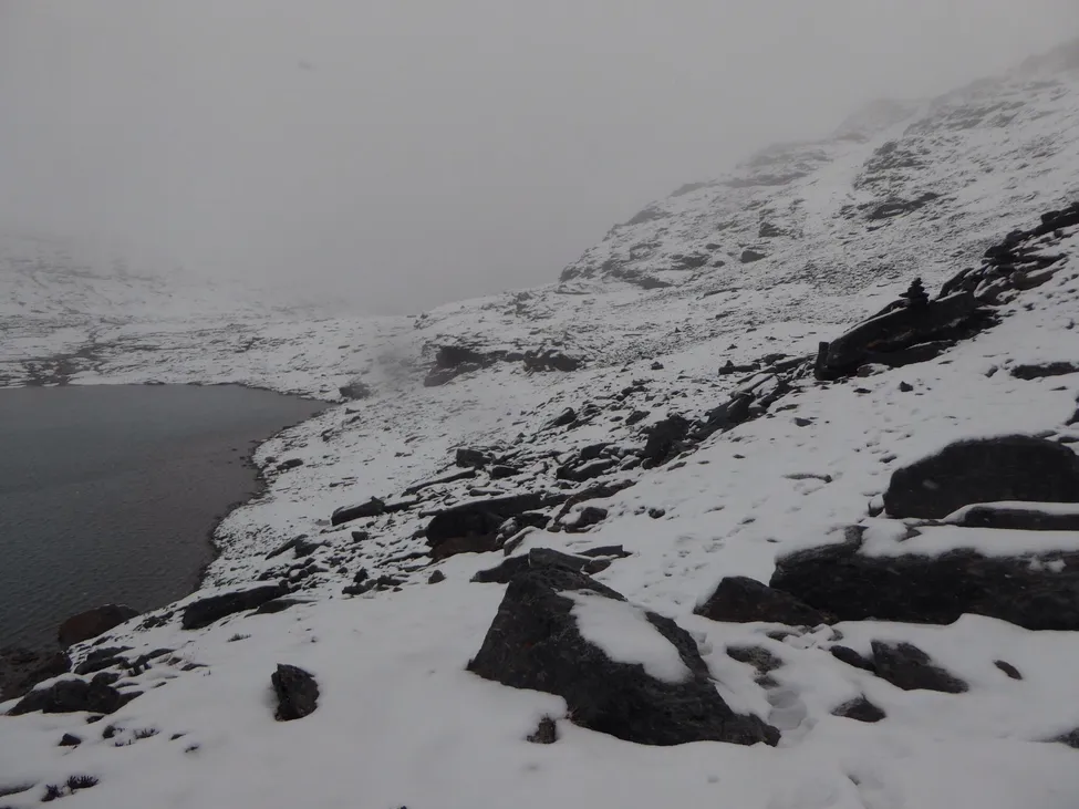 Snö, blåst och dimma i guoblavagge 16/9 2018