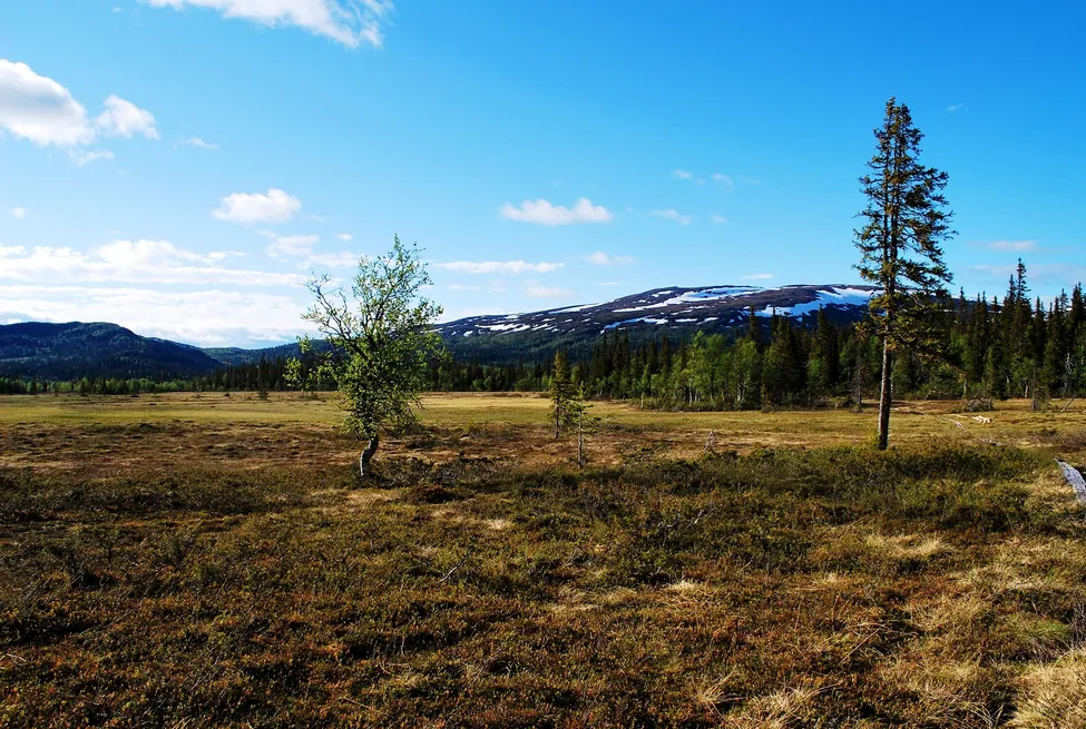 Stor-Svansjömyran, strax söder om Lill-Månkesvallen. Fjället i bakgrunden är Njoktjere. Juni 2015.