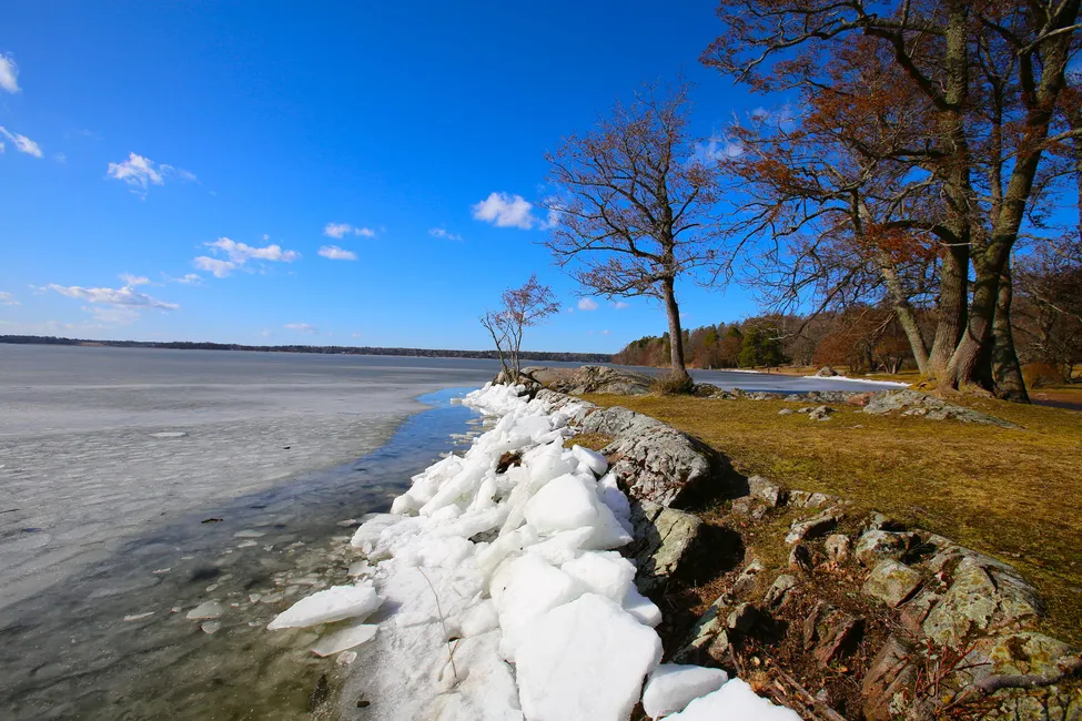Isen bryts så sakteligen upp i Kungshamn-Morga naturreservat, och vinden trycker isen mot klipporna där den smulas sönder.