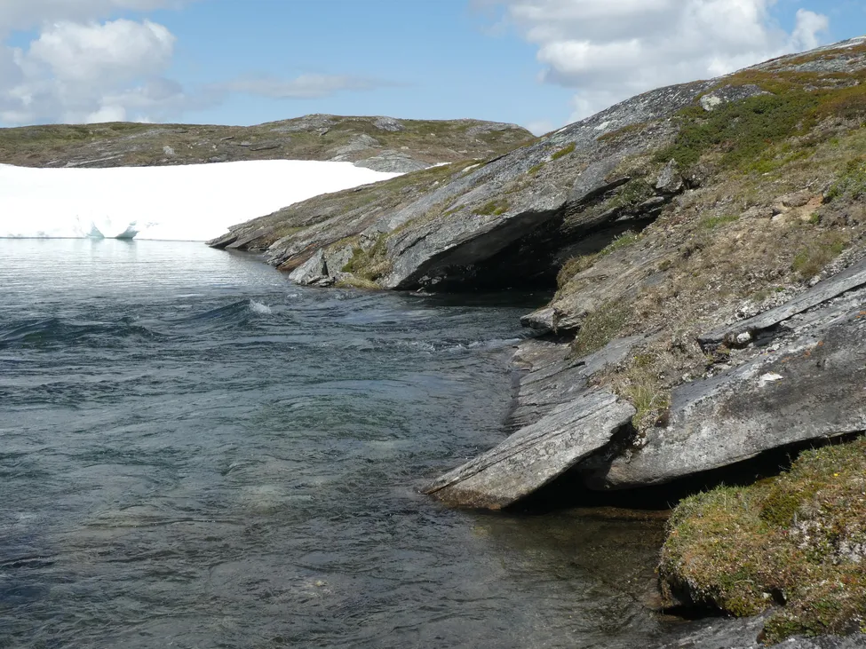Den naturliga stenbron vid Råvejaures utlopp