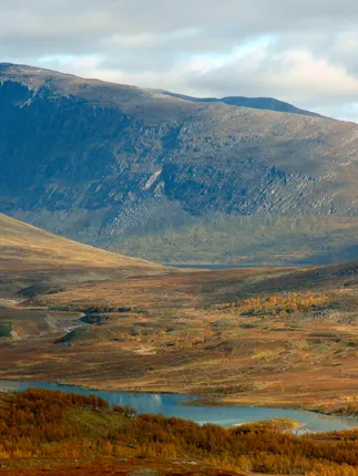 Under en kort ensamvandring från Silvervägen till Ikesjaure, hösten 2002. Jurunjaure i förgrunden och Ikesjaure, Skellefteälvens källsjö skymtar framför Näjddatjåhkå en dryg mil bort.