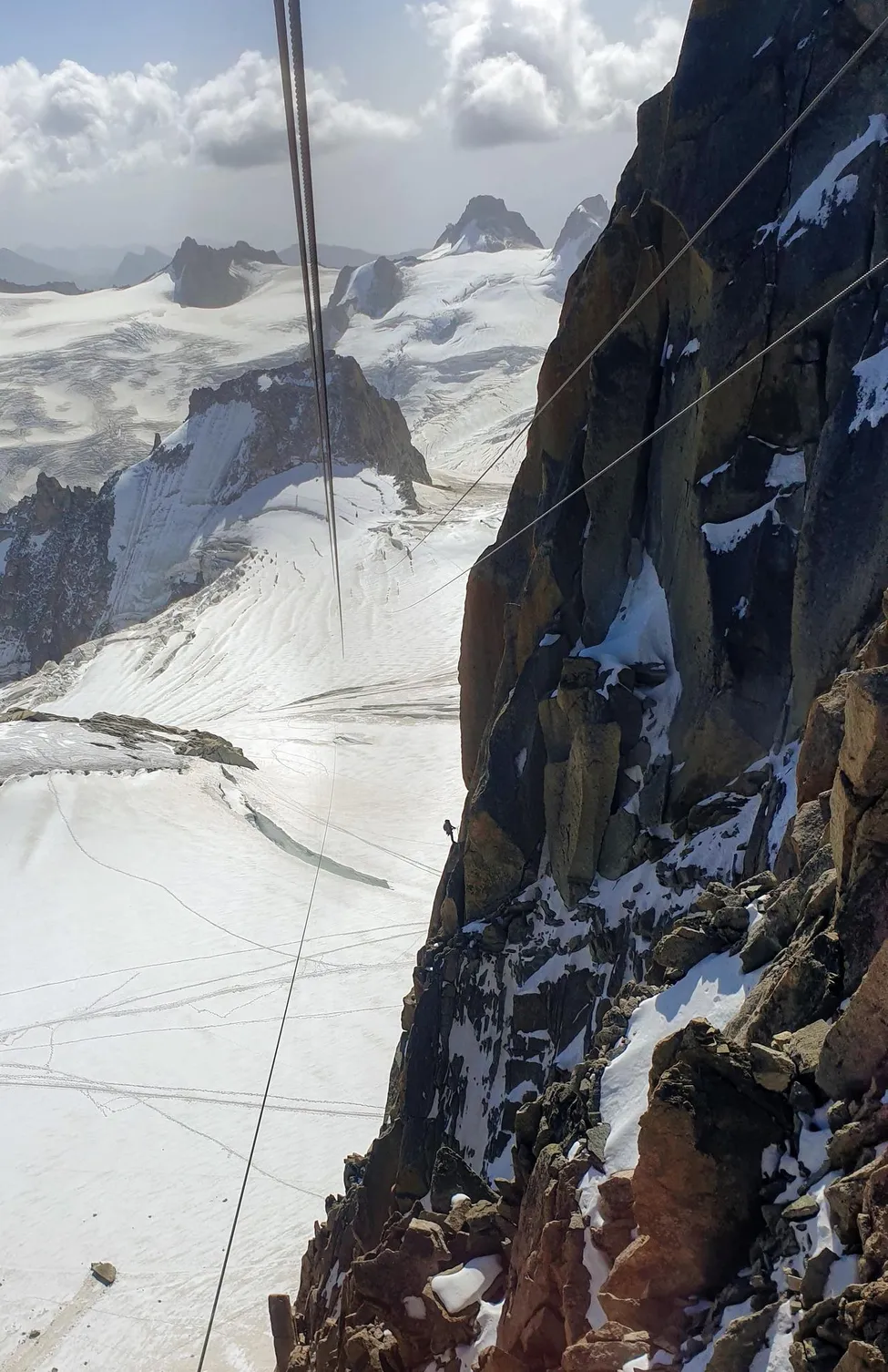 Jo, jag klättrar men bilden är tagen från liften mellan Aiguille du midi och Helbronner i Italien.