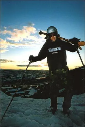 Säsongsavslutningen 2003 skedde denna kväll 23 maj. Erik är på väg upp till ett hopp vi byggt. Klockan är runt 9 på kvällen.