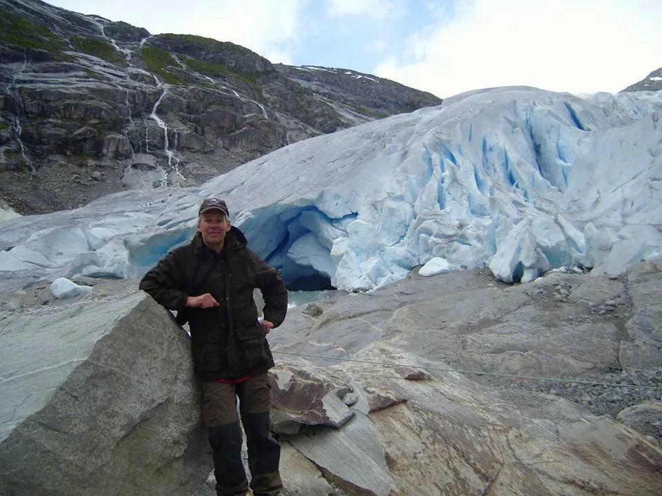 Nigardsbreen, lägg märke till människorna som går uppe på glasiären så inser man hur tjock den är.