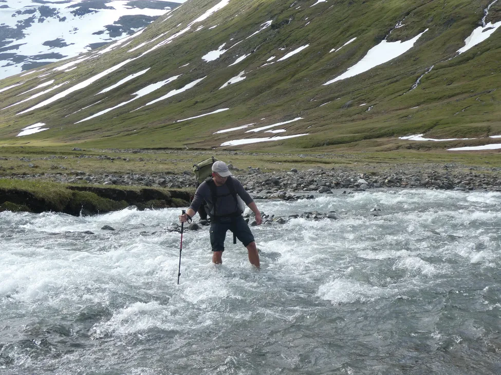 Vadning över den västligaste strömfåran av Gasska Låvdaruovdasj
