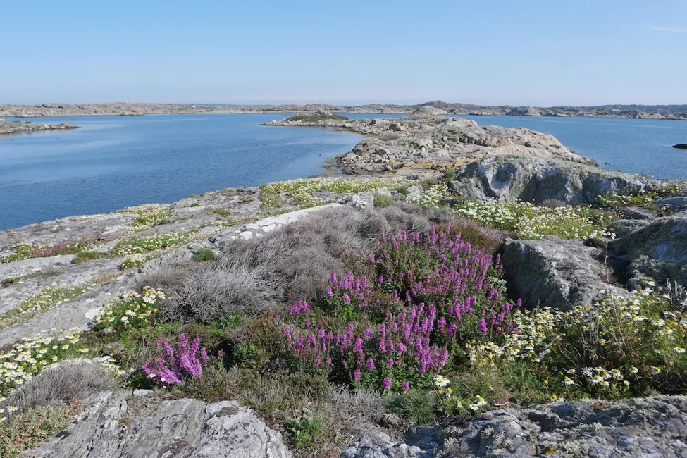 Tack Bertil :-) Ja den karga skärgården kan verkligen överraska. Någon kan kanske artbestämma de violetta blommorna? De vita är möjligen baldersbrå. Ser ut som små prästkragar.