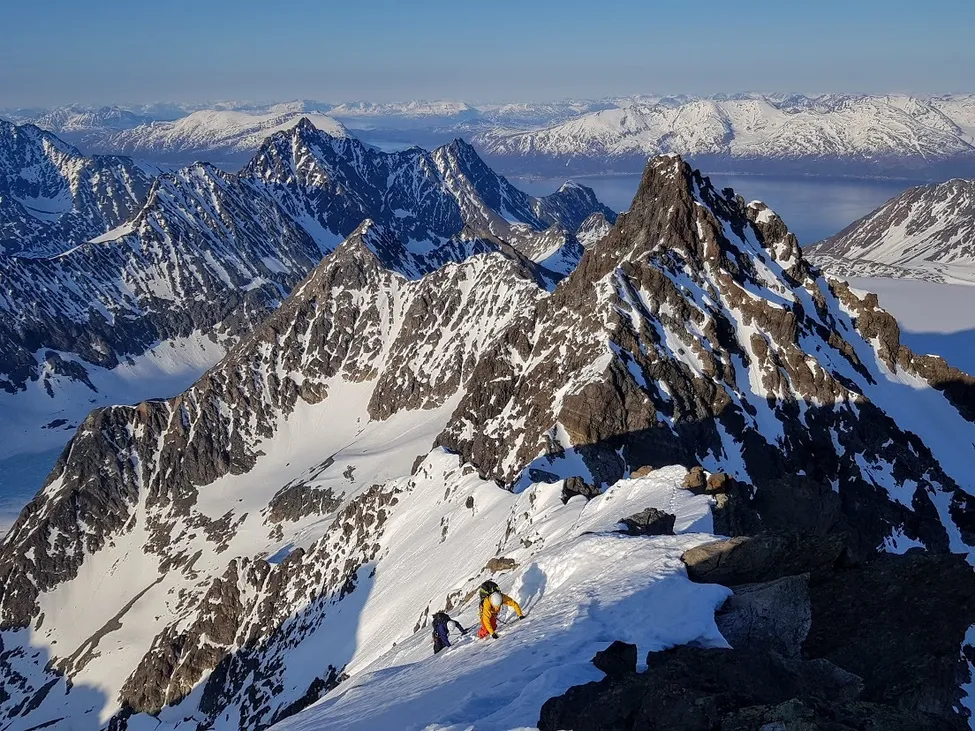 En bit från toppen på Store Lenangstind, Lyngen. En fantastisk Majnatt 2018