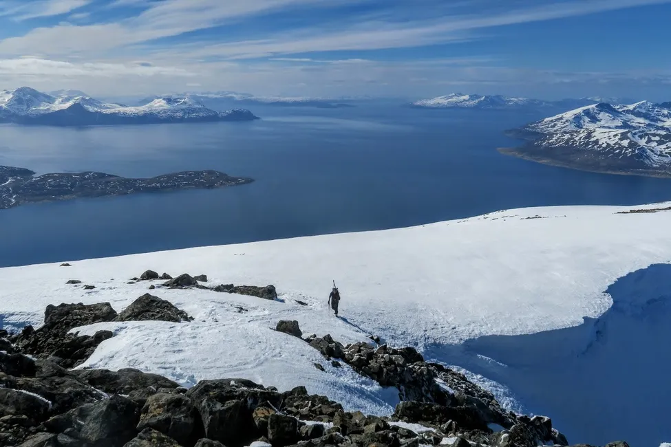 Toppflanken på Store Kågtind, längst upp i Troms. Maj 2018