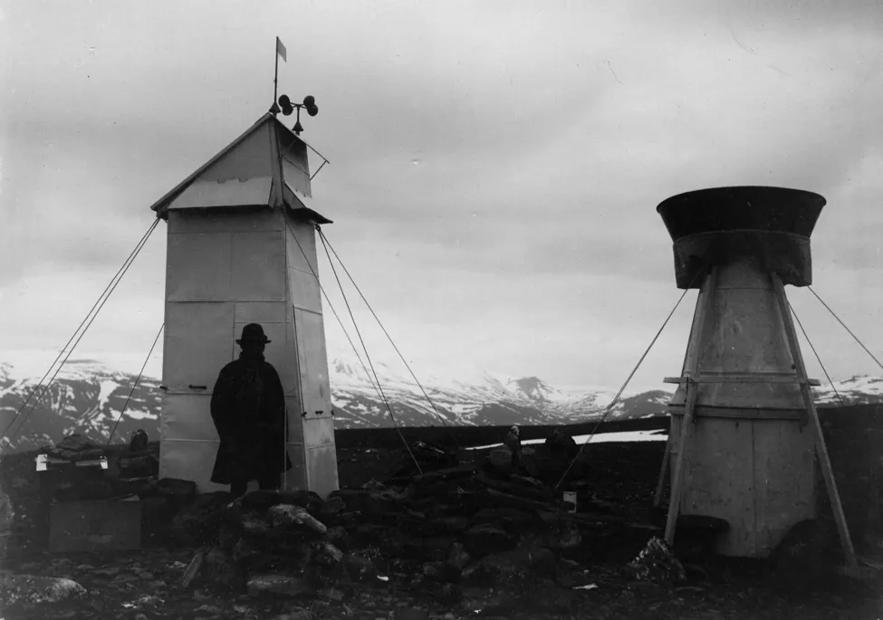 Några hundra meter sydväst om röset på Sähkok (https://www.utsidan.se/albums/viewpic.htm?ID=85963) låg Axel Hambergs meteorograf på Sähkok. Denna meteorograf var prototypen för den som kom att byggas på Bårrde. Detta foto är taget av Axel Hamberg år 1900.Länk till storformat https://www.utsidan.se/obj/photo/26/26dea6bebde54ad45c90f5f576dcff6a.jpg