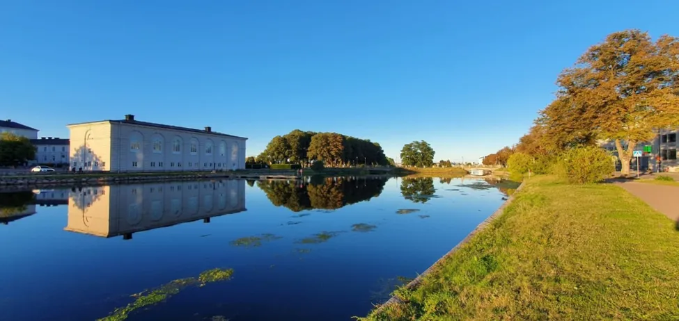 Riktigt vackert med den blå himlen och vattnet en härlig morgon