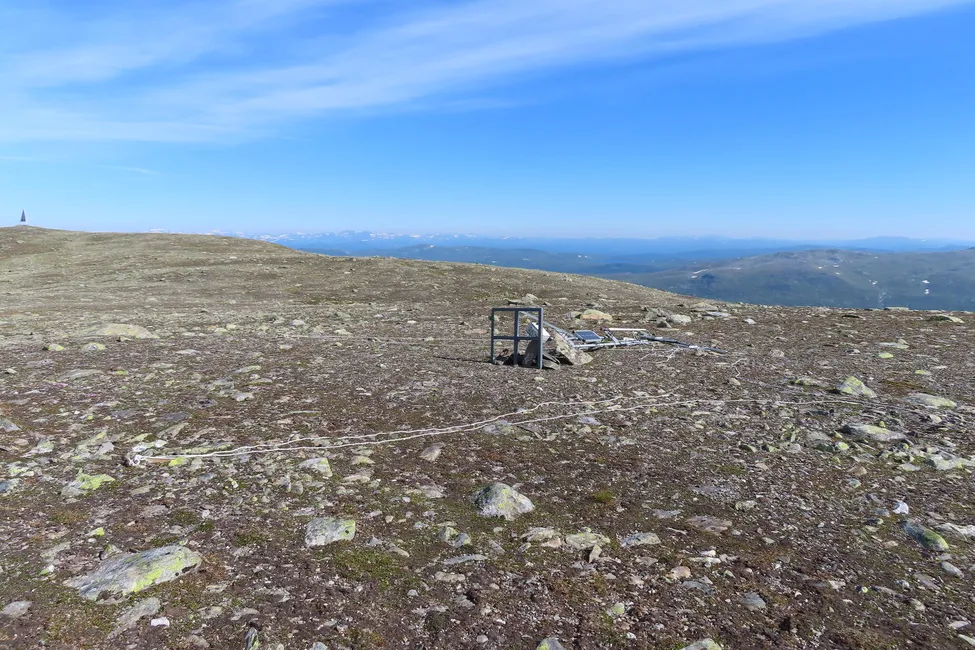 Uppe på Mellanskogsfjället där en väderstation blåst omkull.