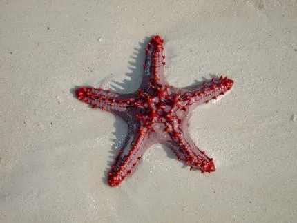 Denna mäktiga sjöstjärna på drygt 30cm i diameter hittades strandad på nordvästra Zanzibar. Den sjösattes genast.
