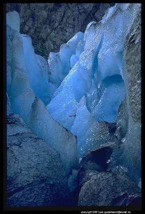 Sprekker i Buarbreen ved Folgefonna.