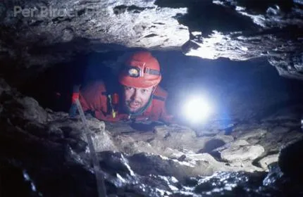 Spännande bild. Det måsta vara tungt att kartera i så trånga gångar. Bra att ficklampa lyser, det brukar de aldrig göra på bild...
