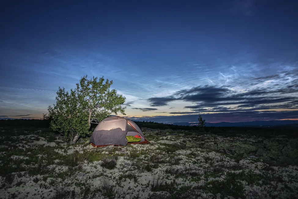 Tältplatsen några hundra meter norr om Old Tjikko och nattlysande moln - 2021-08-03