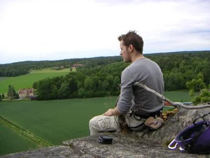 Preciss klarat tre replängder upp från Pelaren och sitter och njuter av utsikten.