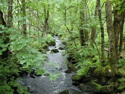 Fin bäck i fin lövskog på en fin bild