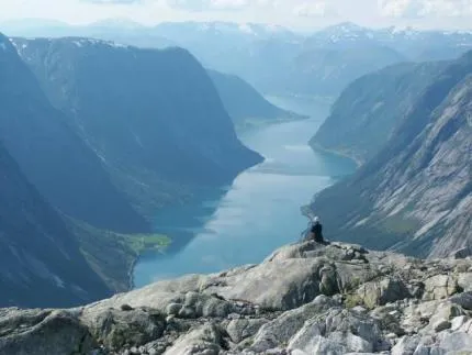 Efter drygt 1000m stigning och timma på breen fick vi lön för mödan. Den Norska Fjellheimen på sitt bästa