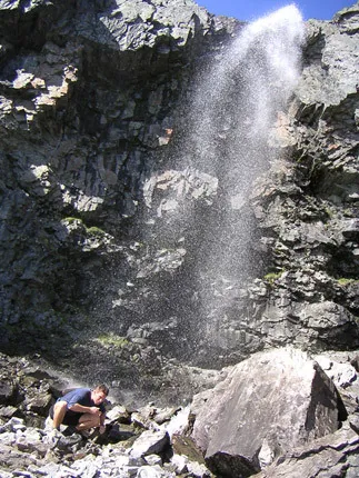 Vattenpåfyllning under den raska vandringen till Treriksröset (från Kilpisjärvi).