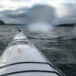 Ibland är det blött att paddla. På väg in mot Härnösand i norrasundet mellan Härnön och Lungön så blåser det plötsligt upp frånlandsvind och jag möte kort krabb sjö och en hård motvind. Reultatet, blött och trötta armar : )
